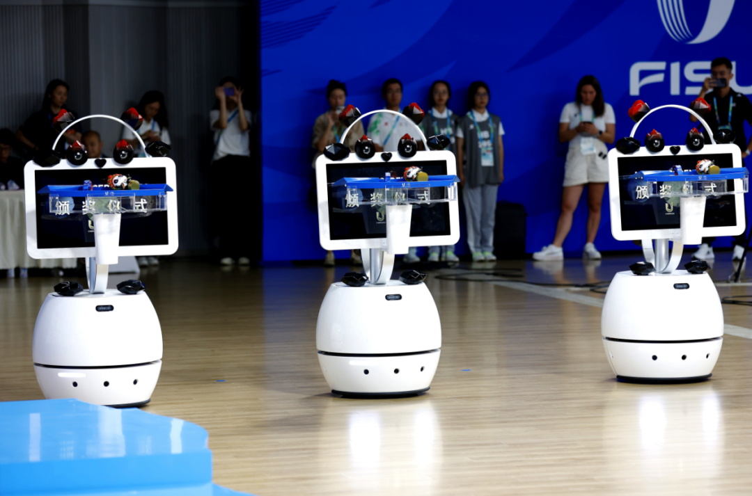 大运“蓉宝”机器人是一款带有应急功能的服务机器人,不仅外形“萌”,还身兼应急、问询、翻译、引领等“身份”,能够进行AED递送、还有GPT问答服务接入、互联网的远程呼叫服务、信息播报等功能。聚焦大运会的场景应用,“蓉宝”还特别设置了颁奖功能。