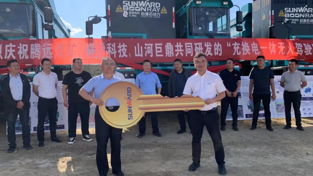 8月28日下午,由腾远煤矿、伯镭科技、山河巨鼎共同研发的5台“充换电一体无人驾驶矿卡”在鄂尔多斯市东胜区腾远煤矿采面正式交付使用,这是鄂尔多斯市落地的首批该类车型。(推荐阅读:鄂尔多斯市首批充换电一体无人驾驶宽体矿卡正式交付!)