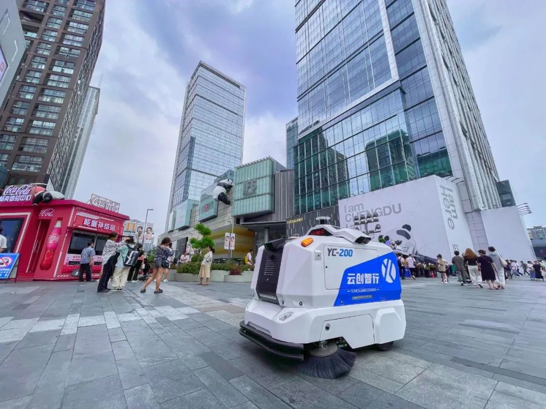 近日,由云创智行自主研发的无人驾驶户外环卫车YC-200在热闹繁华的成都春熙路步行街开启智慧环卫清扫,为这条汇集了众多时尚品牌和中华老字号店铺的商业名街,注入了新的科技活力。