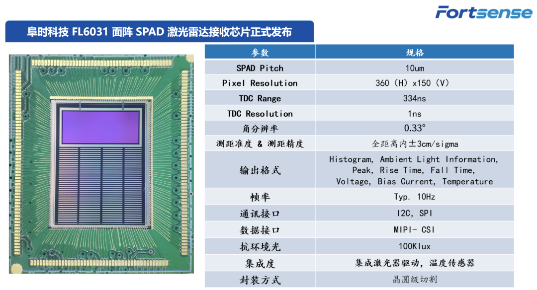 阜时科技:全固态激光雷达SPAD芯片FL6031