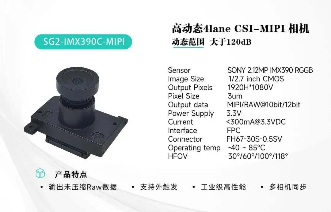 森云智能还发布了首款基于NVIDIA Jetson Orin的120dB高动态4 Lane CSI-2 MIPI相机——SG2-IMX390C-MIPI,可应用于机器视觉、工业检测等场景。