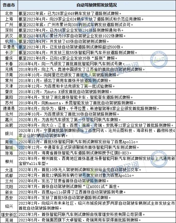 作为自动驾驶技术创新的前沿地区,中国国内一直在积极推进自动驾驶路测牌照的发放工作。截至2023上半年,中国已经有超33座城市发放了自动驾驶路测牌照。