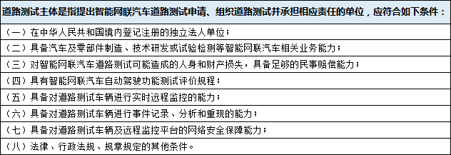 现以《智能网联汽车道路测试与示范应用管理规范(试行)》为准,对道路测试申请主体、驾驶人及车辆要求及道路测试申请流程一一展现。