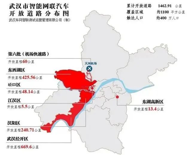 今年8月,第七批智能网联汽车测试道路正式对外公布,新开放东西湖、汉阳和硚口三区约651.35公里道路,汉阳与汉口实现了跨区连片。