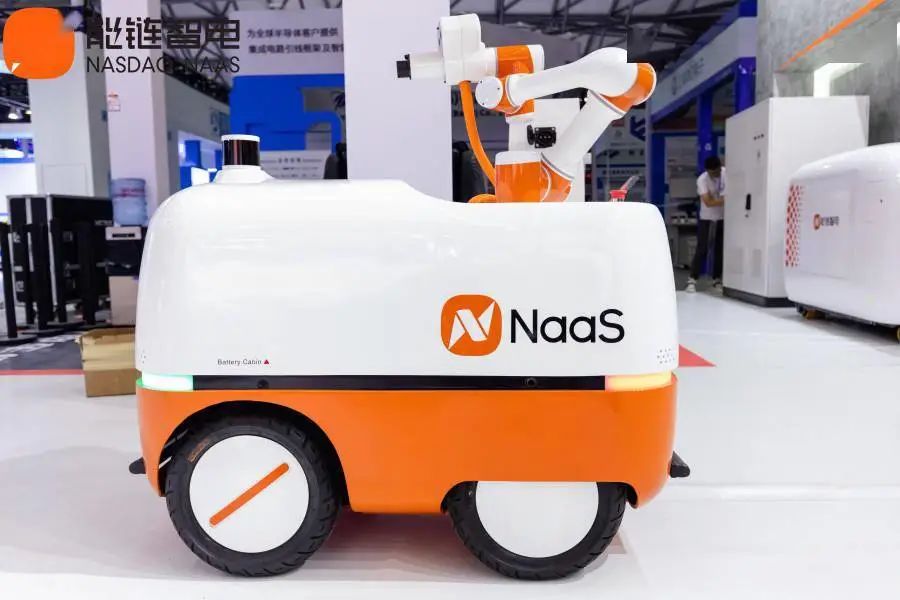 国轩高科研发的全球首款量产智能移动充电机器人,它自重2.1吨,配备4块锂电池,用380V电压充电3.5小时就能为五六辆新能源汽车充电。运用于住宅小区、商业园区、停车场等场景,可降低电网负荷和电价成本。