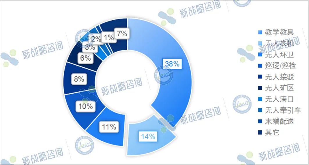 从项目分布来看,第三季度统计的96个中标项目中,自动驾驶教学教具项目占比最高,36个项目占比近38%。其次是智慧农业,13个项目涉及无人驾驶农机及系统采购,占比近14%。无人环卫领域共10个相关中标项目,占比约为11%。