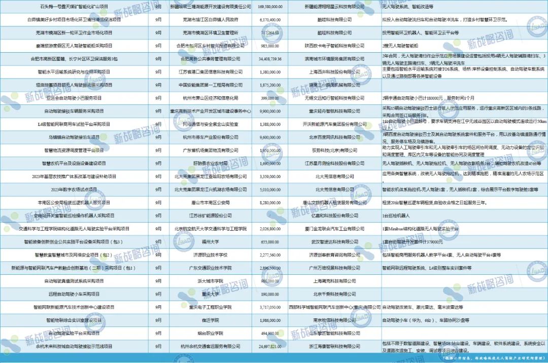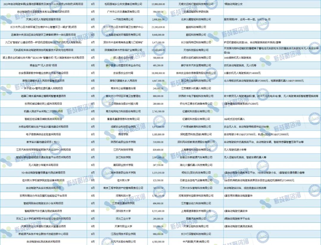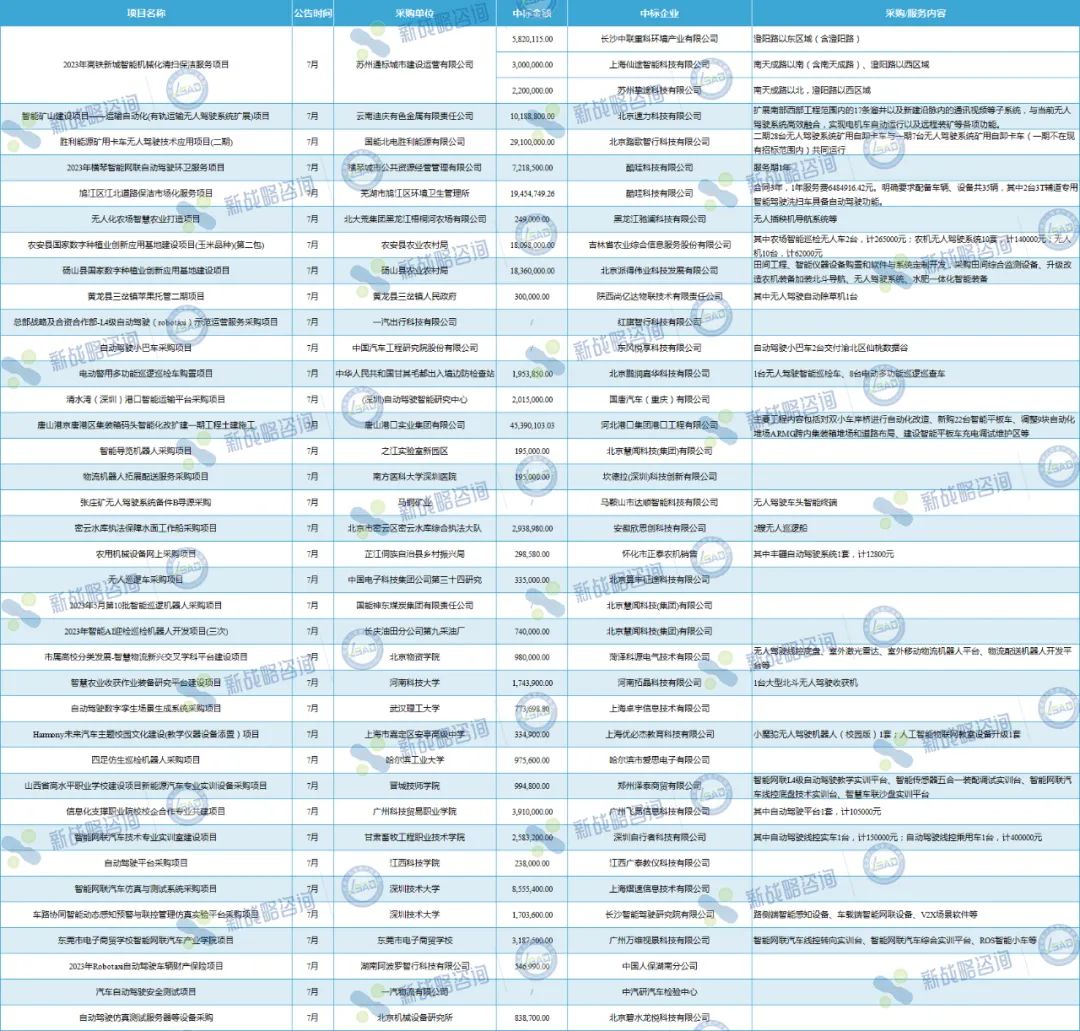 2023第三季度国内自动驾驶中标项目情况(未完善之处请指正)