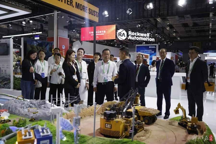 卡特彼勒展台的3D互动沙盘全面展示了卡特彼勒机器设备在基础设施建设、采矿、数据中心、机场、铁路以及石油和天然气开采等众多领域的应用,以及在无人驾驶、替代燃料、互联和数字化、电气化(AACE)领域的持续创新和突破。