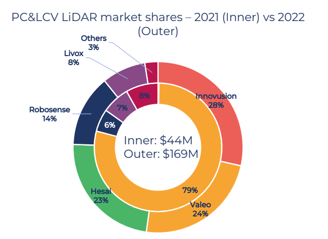 值得一提的是,国际权威研究机构Yole Intelligence发布的《2023年全球车载激光雷达市场与技术报告》,全面解读了激光雷达技术与市场趋势,报告显示,2022年度Innovusion全球市场占有率大幅度超越21年预期,以全球第一的优秀成绩获“乘用及商用车车载激光雷达市场”销量和营收额的双料冠军。