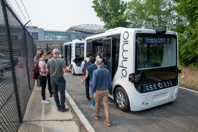 今年6月初,纽约新泽西州港务局创新中心和新西兰自动驾驶交通公司Ohmio在肯尼迪机场举行了首次由3辆无人驾驶摆渡车队进行的自动驾驶演示。测试应用的每辆无人驾驶摆渡车可搭乘8名旅客。