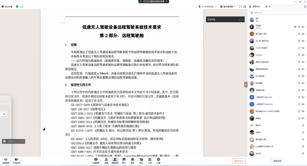 11月24日下午,低速无人驾驶产业联盟标准化技术委员会组织召开“2023年团体标准草案第二次线上讨论会”。联盟标委会专家代表以及标准参与单位有关负责人参加会议。
