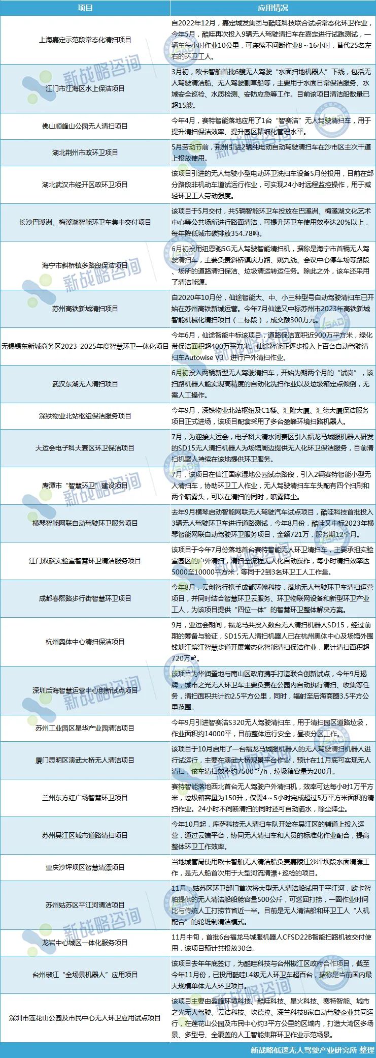 2023年国内部分新增无人环卫项目(不完全统计,未完善之处请指正)