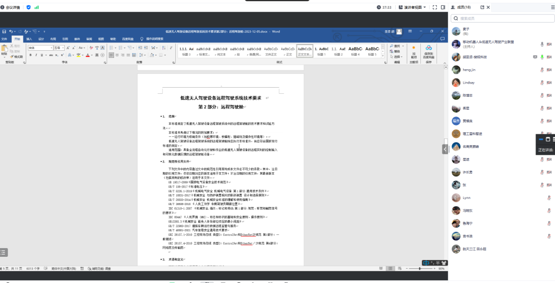 12月5日,低速无人驾驶产业联盟标准化技术委员会组织召开“2023年团体标准草案第三次线上讨论会”。联盟标委会专家代表以及标准参与单位有关负责人参会。
