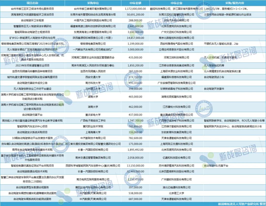 2023年11月自动驾驶领域中标项目汇总(据公开信息不完全统计,未完善之处请指正)