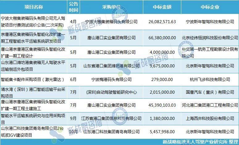2023年部分港口无人驾驶项目招投标情况(不完全统计,未完善之处请指正)