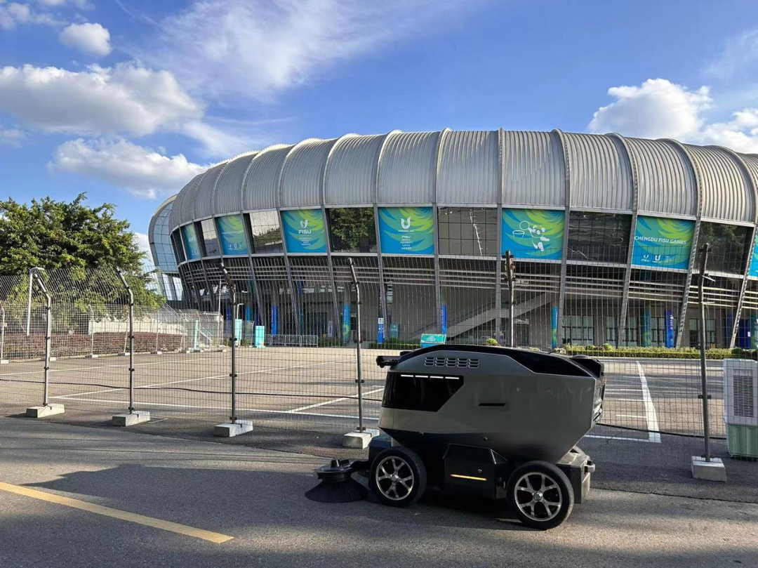 项目背景:2023年7月28日,第31届世界大学生夏季运动会(以下简称:大运会)开幕式在“大美之城”中国成都举行。电子科技大学清水河校区体育馆是本次大运会篮球项目的比赛和热身场馆。为更好地展现电子科技大学积极探索科技体育融合的发展模式,该赛区引入CITIBOT研发的SD15无人清扫机器人,为场馆周边提供无人化的环卫保洁服务。