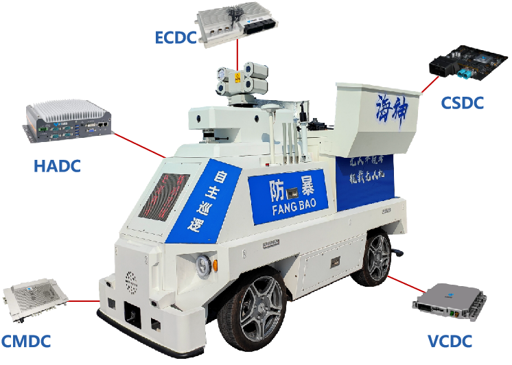 整车将自动驾驶域 (HADC)、整车控制域(VCDC)、底盘运动域 (CMDC)、卫星惯导融合定位域(CSDC)、应用中枢边缘计算域(ECDC)集成制造,为安防工作采集较为全面的数据信息。