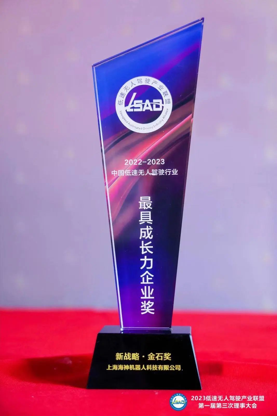 “2022-2023低速无人驾驶行业双年度评选”活动特设创新产品奖、最佳供应链品质奖、最具投资价值奖、最具成长力价值奖。该届评选活动中,海神机器人荣获“最具成长力企业奖”。