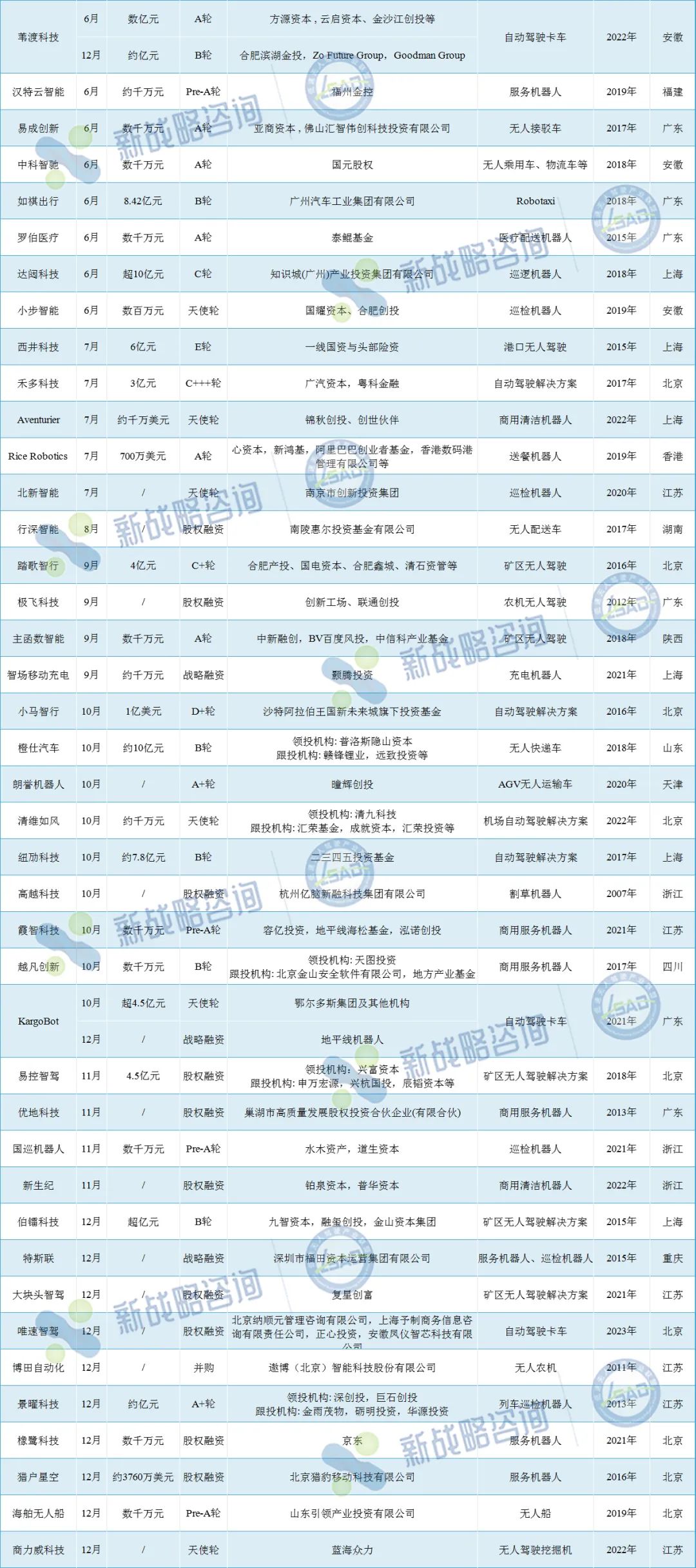 2023年国内无人驾驶领域融资情况(据公开信息,新战略低速无人驾驶产业研究所不完全整理)