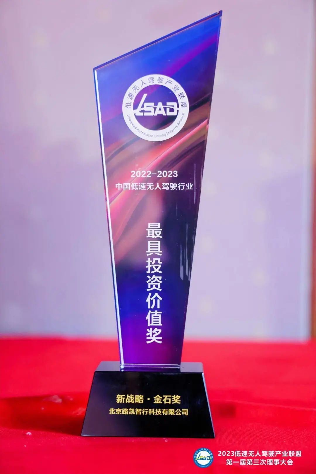 “2022-2023低速无人驾驶行业双年度评选”活动特设创新产品奖、最佳供应链品质奖、最具投资价值奖、最具成长力价值奖。该届评选活动中,路凯智行荣获“最具投资价值奖”。