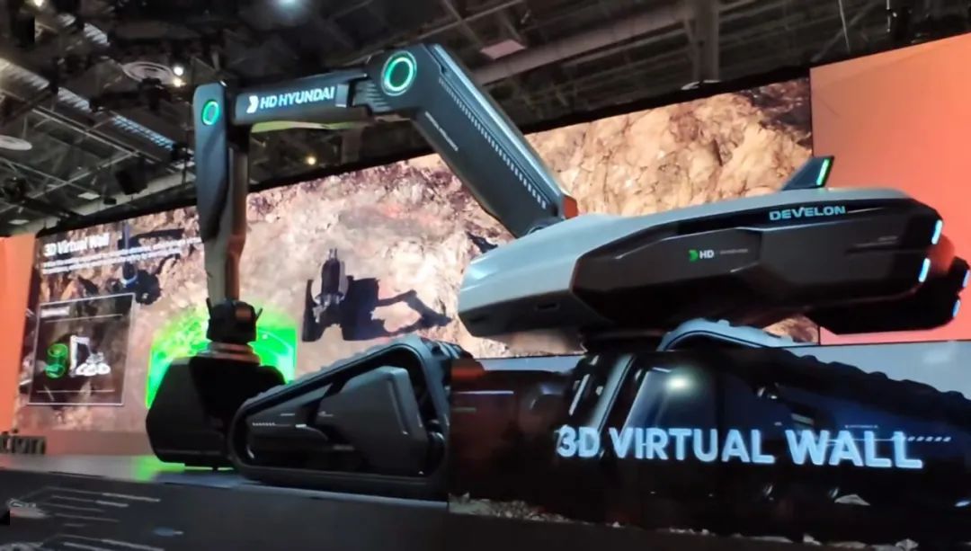 HD现代的展厅面积约为300平,由Future Xite 、Twin Xite 、Zero Xite三个主题组成。其中Future Xite,重点介绍了采用HD现代无人、自动化尖端技术的下一代建设现场的未来场景;Twin Xite重点介绍基于数字孪生技术的现场管制解决方案和远程控制技术。现场展示的无人驾驶挖掘机是韩国现代智能建筑解决方案的核心产品之一。