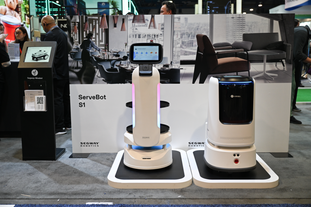 九号公司旗下商用服务机器人品牌九号机器人携旗下送物机器人、送餐机器人以及与英伟达共同开发的Nova Cater AMR等产品在展会亮相。