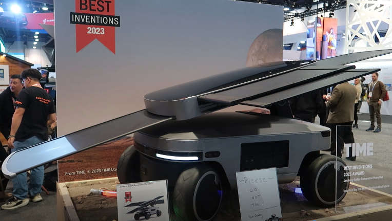 华宝新能推出的光充火星机器人集太阳能板发电、户外电源储能和供电功能于一体,它可以自动地去寻找光源,储存太阳能并转化成电能。可以应用在户外生活、家庭供电和应急用电等方面。