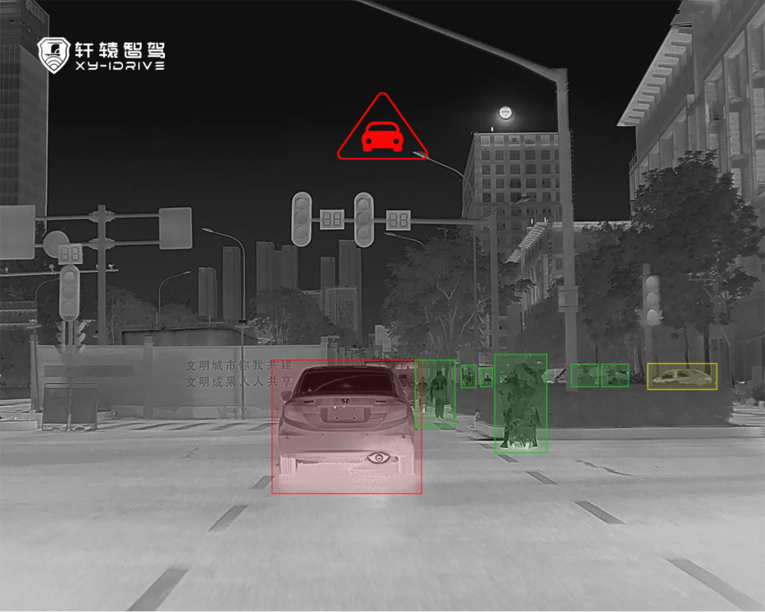 (1)全时感知,突破无明。依靠热辐射成像,完全摆脱光线影响。夜间无光、雨夜行车、对向眩光、进出隧道等场景,系统皆可清晰成像,帮助驾驶者全时掌握路况;