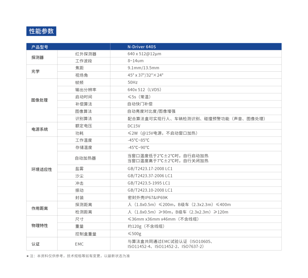 N-Driver640S(车载红外智驾系统)基于AI深度学习算法和远红外热成像原理,对前方障碍物进行检测识别智能预警,轻松应对黑夜、雾霾、强光眩光等复杂路况环境,大幅提升车辆全时感知能力,特别适用于交通夜视和智能驾驶领域。