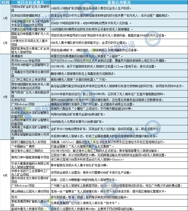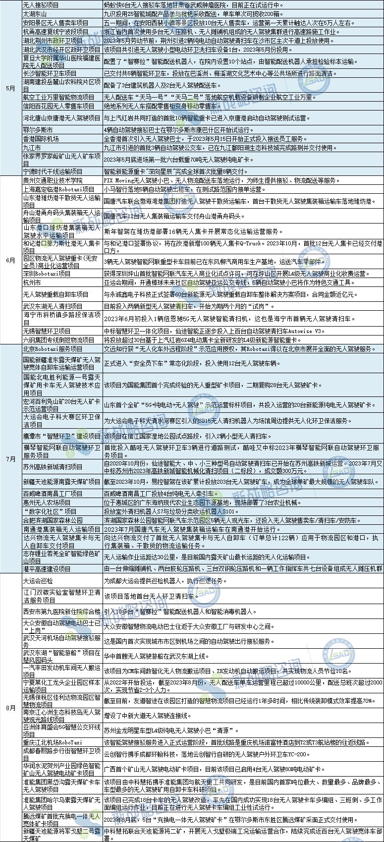 2023 年国内部分自动驾驶落地项目及最新情况(新战略低速无人驾驶产业研究所不完全统计)