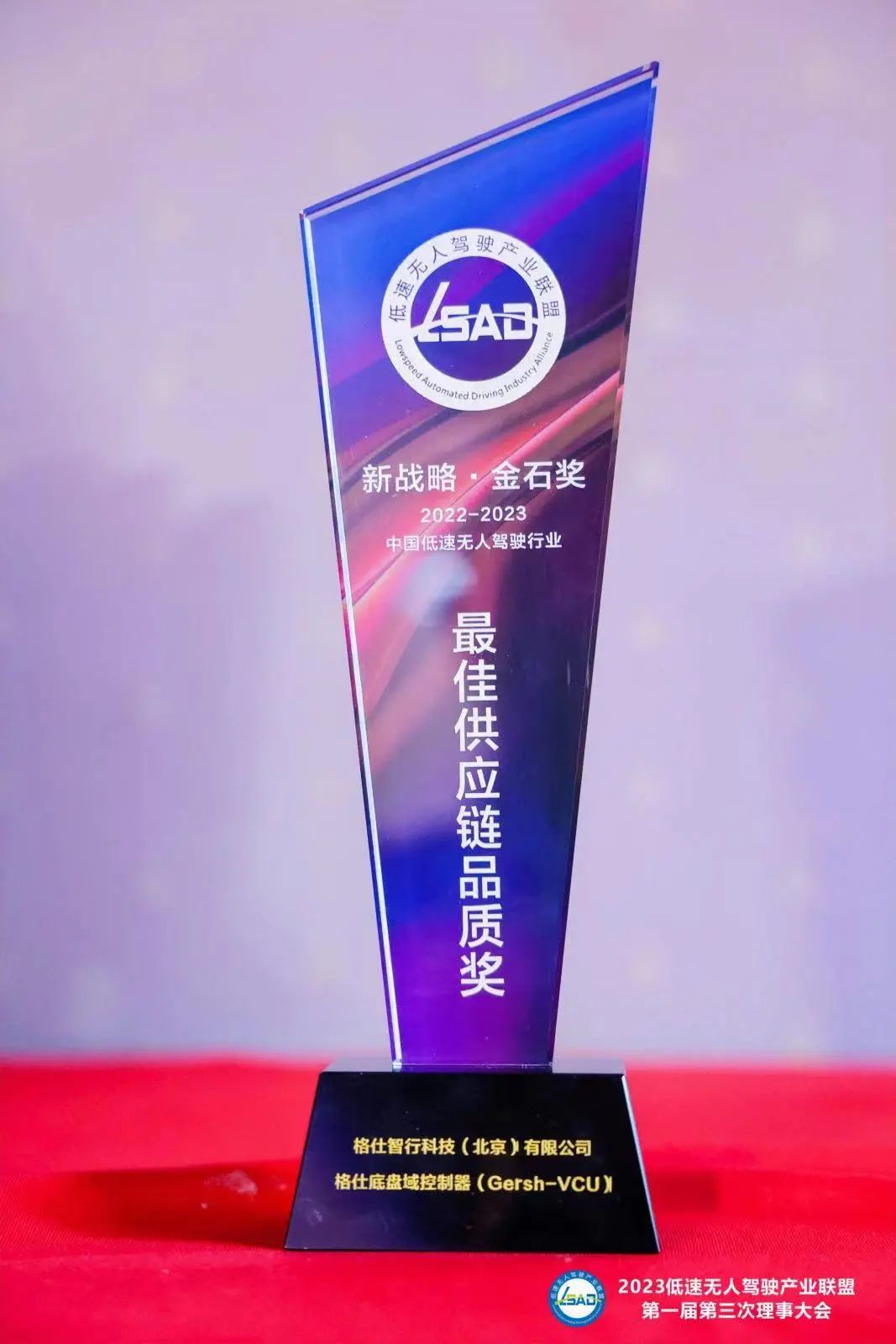 “新战略·金石奖”评选活动由低速无人驾驶产业联盟主办,旨在树立行业标杆,通过选树一批典型,向全行业推广低速无人驾驶创新技术、典型案例、成功经验等,激励企业以高质量创新,引领行业高质量发展。在“2022-2023 低速无人驾驶行业双年度评选活动”中,格仕底盘域控制器(Gersh-VCU)荣获“最佳供应链品质奖”。