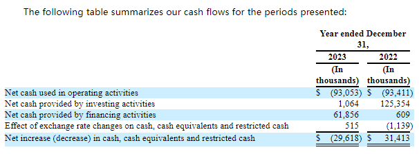 Innoviz 2023 年现金流增长情况(来源:美国证券交易委员会,单位以千计)