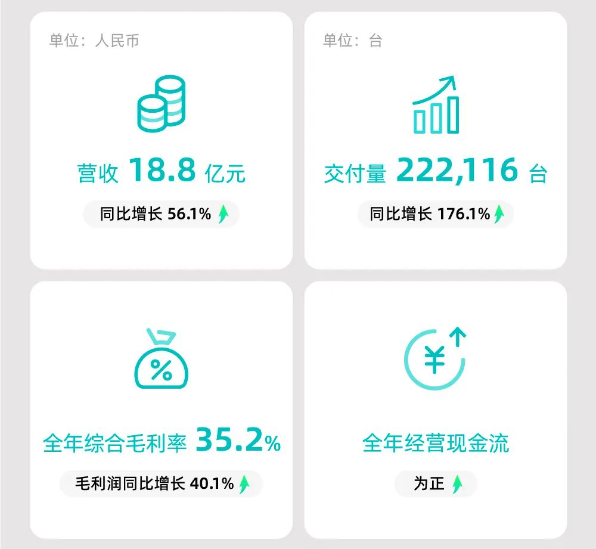 3 月 12 日,禾赛科技公布 2023 年第四季度及全年未经审计的财务数据。财报显示,禾赛科技 2023 年实现全年营收 18.8 亿元,同比增长 56.1%;其中第四季度营收 5.6 亿元,同比增长 37.1%。2023 年禾赛科技全年激光雷达交付量为 222,116 台,同比增长 176.1%;其中第四季度激光雷达交付量为 87,736 台,同比增长 84.6%。