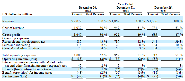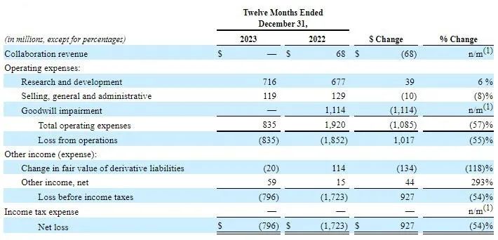 Aurora 2023 年经营业绩报表(来源:美国证券交易委员会,单位以百万计)