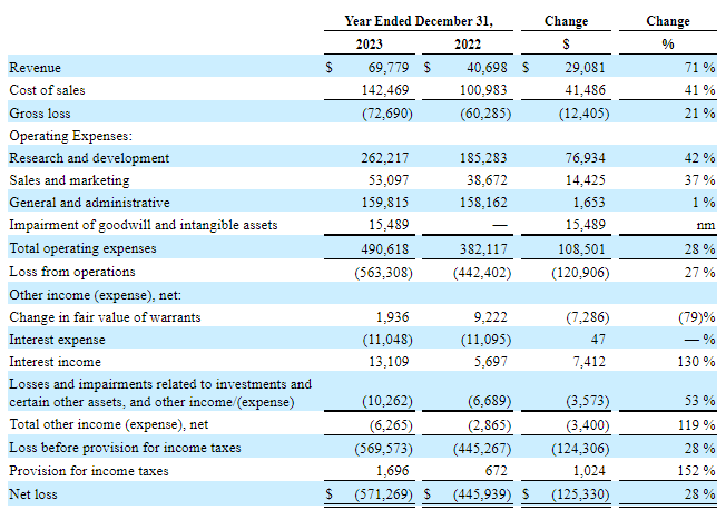 Luminar 2023 年经营业绩报表(来源:美国证券交易委员会,单位以千计)