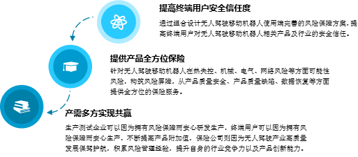 新的风险业态给传统保险行业带来前所未有的诸多挑战,传统的保险产品无论是条款设计、风险保障、服务模式都难以涵盖智能制造低速无人驾驶车辆(智能机器人)的实际风险保障需求。为此,中国南方电网公司旗下的子公司鼎和财产保险股份有限公司率先创新突破,于2022年9月联合工业智能机器人头部企业优艾智合,与中再产险等行业内头部公司联合开发机器人产品质量责任保险,这是国内首份移动机器人保险,开创了无人驾驶移动机器人商业化风险转移的先河。
