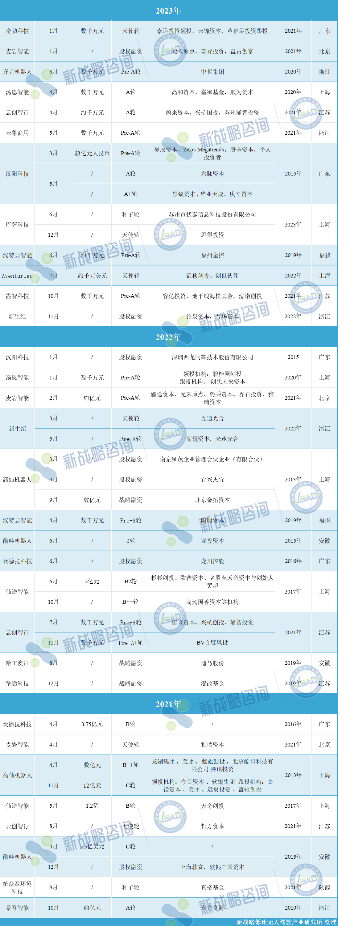 2021-2023年国内无人清洁环卫领域融资情况(据公开信息,新战略低速无人驾驶产业研究所不完全整理)