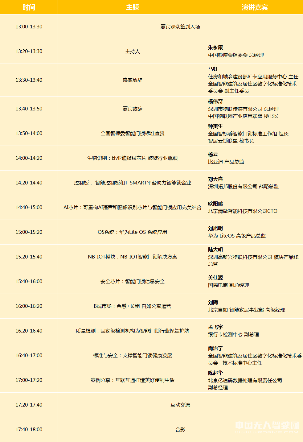 新年伊始,本次峰会作为开年第一场智能门锁行业活动,届时将邀请住房和城乡建设部IC卡应用服务中心主任、全国智标委副主任委员马虹,深圳市物联传媒有限公司总经理杨伟奇,全国智标委技术标准中心主任尚治宇,全国智标委智能门锁标准工作组组长钟美生,中国锁博会组委会总经理朱永康、华为Lite OS高级产品总监刘旭明,比亚迪产品总监杨云、深圳高新兴物联技有限公司模块产品线总监陆大明、深州拓邦股份有限公司战略总监刘天喜、北京清微智能科技有限公司CTO欧阳鹏、国民电商副总经理关仕源、北京自如智能家居事业部高级经理刘陶、北京亿速码数据处理有限责任公司副总经理等行业专家以及企业代表出席。