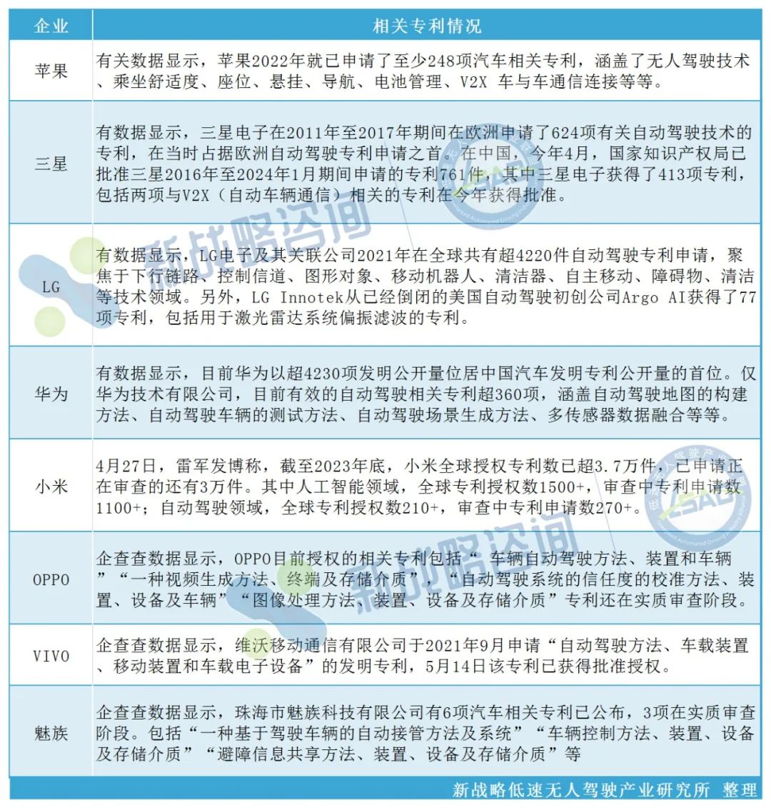 据了解,自苹果启动“泰坦计划”,手机厂商下场造车的热度已经持续多年。盛极一时,苹果、华为、三星、小米、OPPO、VIVO、魅族等都公布了自动驾驶和汽车相关专利。