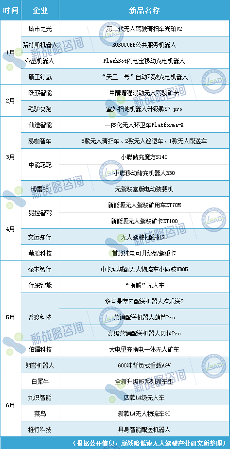 2024上半年国内无人驾驶领域整车新品一览(根据公开信息整理,如有遗漏,请指正)