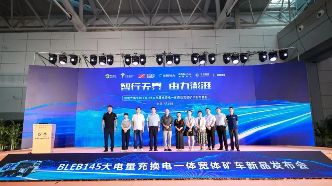 7月19日,新疆矿业联合会秘书长张志敏、新疆骏瑞众研总经理马艳丽、伯镭科技副总裁慕薇薇、启源芯动力新疆分公司总经理刘贤斌、启源芯动力矿山事业部总监狄斌、启源芯动力矿山事业部新疆区域总监赛都拉、同力重工新能源智能科技市场总监江安东、特百佳营销经理贾龙飞、玖行能源技术总监杜雪伟共同出席伯镭新车型发布仪式。