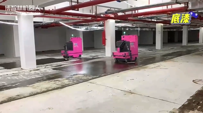 地坪漆涂敷机器人结合激光雷达与BIM技术进行定位导航和智能路径规划,可全自动完成整个地下车库环氧地坪漆的底漆、中涂漆以及面漆的施工。