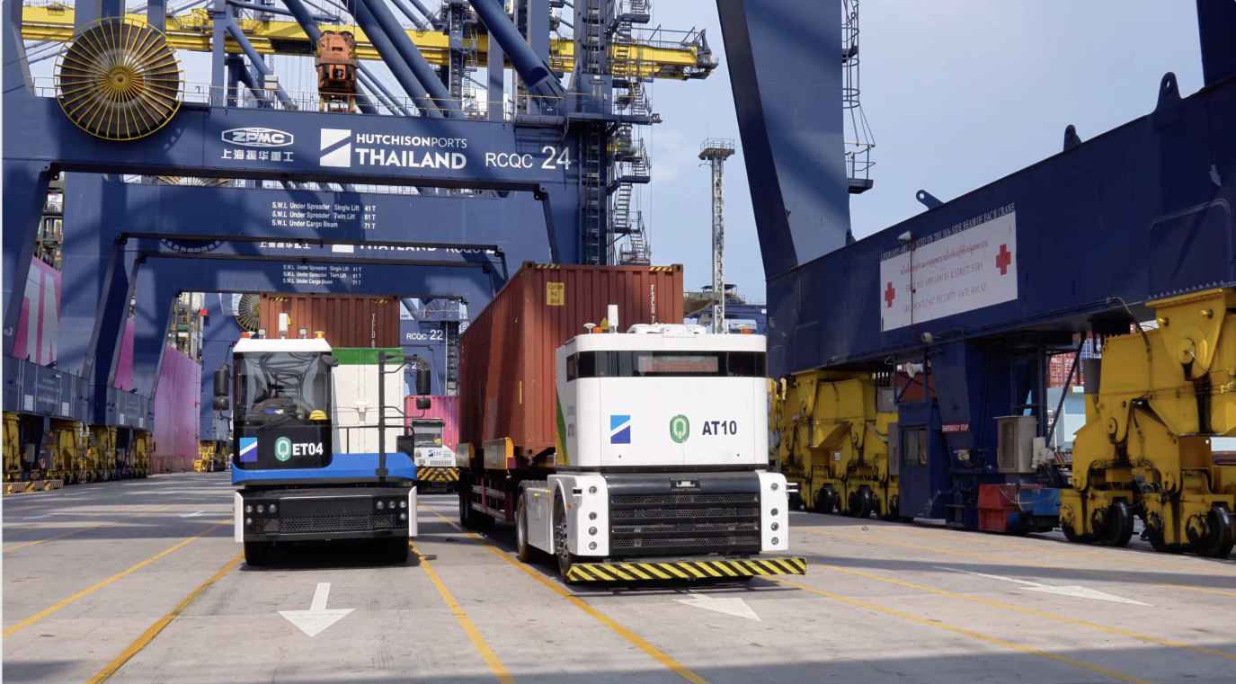 图片来源:Q-Truck与E-Truck共同参与泰国林查班港实际作业,常态化安全运营