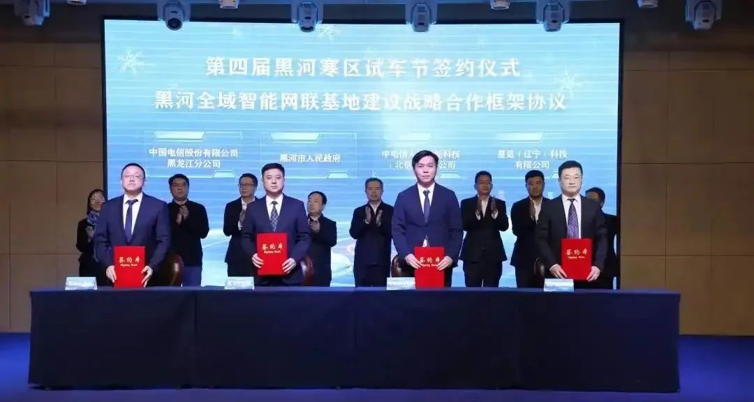 近日,星云互联与黑河市人民政府、中电信人工智能科技有限公司、中国电信股份有限公司黑龙江分公司签署《黑河全域智能网联基地建设战略合作框架协议》,将围绕整城寒地测试基础设施开展智能网联建设,基于车路云一体化架构打造自动驾驶和无人化作业商业场景,四方合力将黑河打造成为国际一流寒区测试基地,加速推进黑河寒地试车产业升级转型。
