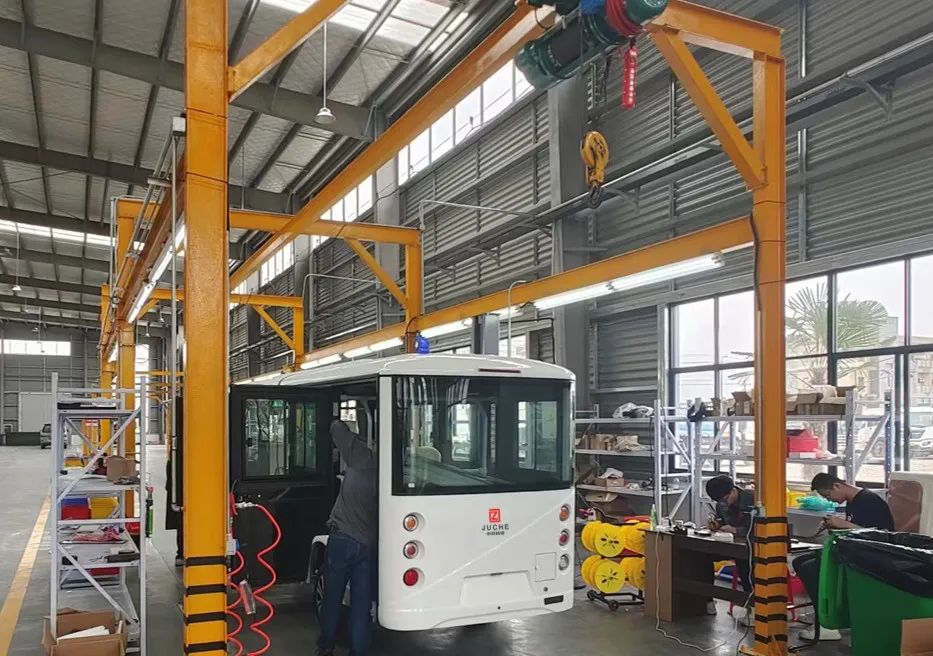 安阳生产基地位于安阳市安阳县高庄镇,车间内有49个装配工位,装配流程包括线束安装、底盘安装、传感器标定等。