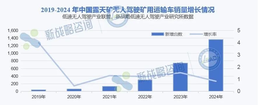 新战略低速无人驾驶产业研究所统计数据显示,2019年我国矿区累计落地的无人矿车还不到50台。但从2020年开始,落地规模成倍增长,目前我国仅露天矿无人驾驶矿用运输车已近2700台。