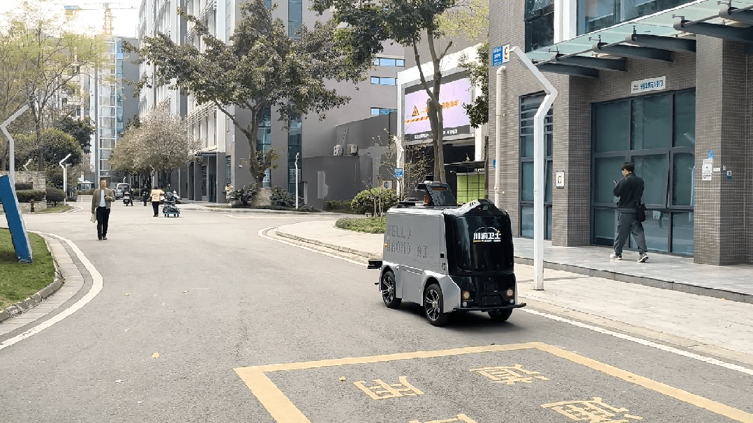 2024年5月,在成都西部智谷园区中毫末智行的小魔驼成为安防机器人“川渝卫士”,不仅可以执行园区常规巡逻任务,在发现不法行为时,还会开启报警灯威慑,并实时调取周边监控系统取证记录,后台工作人员还可通过它进行远程喊话警示。