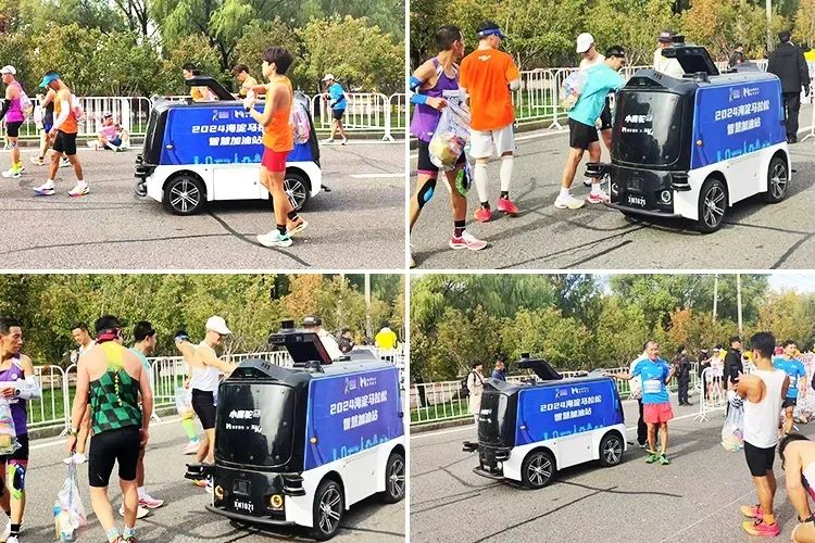 2024年10月,2024北京海淀马拉松现场,毫末小魔驼2.0货舱里装满了饮用水,在马拉松的起点、终点及40公里处,化身“志愿者”循环送水。