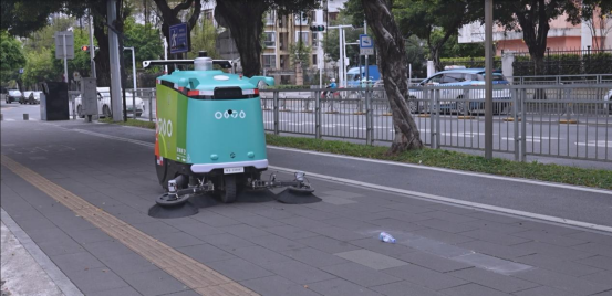 在城市人行道区域,靠近机动车道的绿化带以及公交站台周边,一直存在清扫盲区。为充分发挥智能清扫机器人的效能,赛特智能采用创新清扫方案,让机器人开启吹风功能,将这些区域的垃圾吹至机动车道。在前期作业磨合过程中,赛特智能无人清扫车已与大型道路清扫车实现排班协同。当垃圾被吹至机动车道后,大型道路清扫车会依据协同规划的时间点,及时对路面垃圾进行清理。