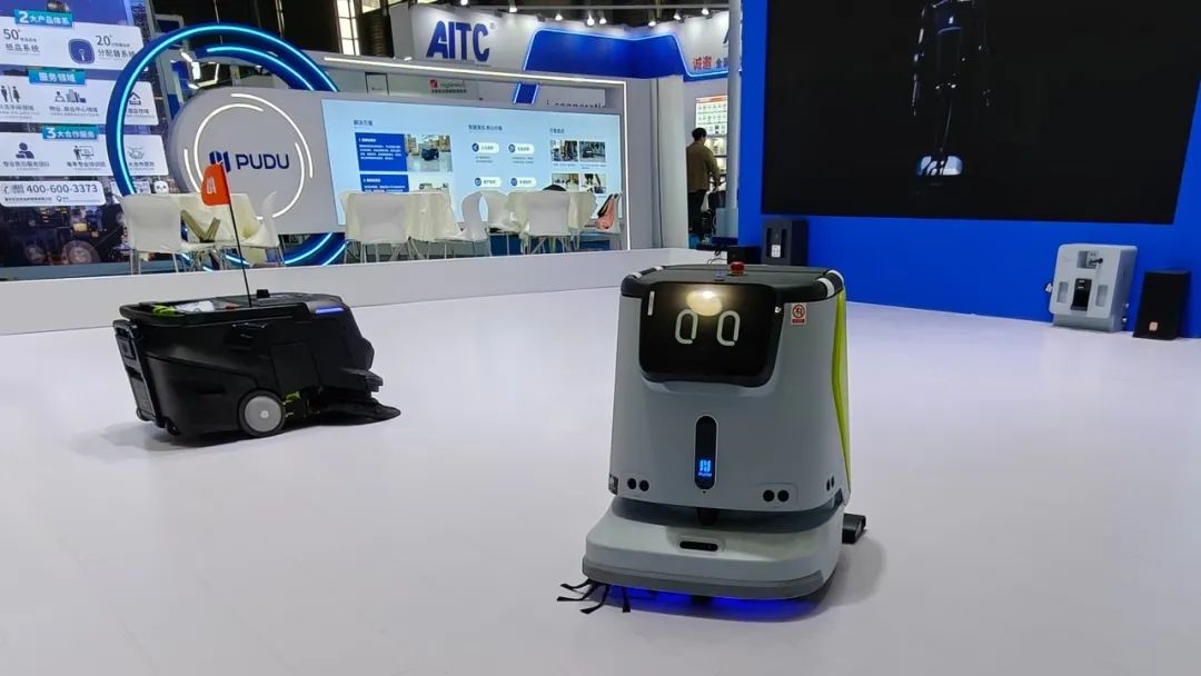普渡科技重点展出两款商用清洁机器人PUDU CC1和PUDU MT1。